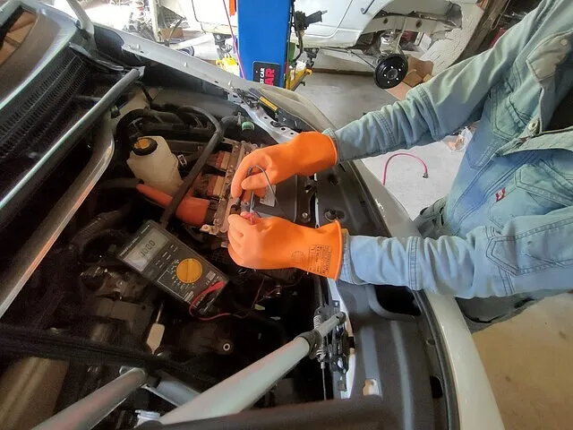 ハイブリットシステムは200Vからの電圧がかかっていますので、きちんとした装備と慎重な作業が必要です。